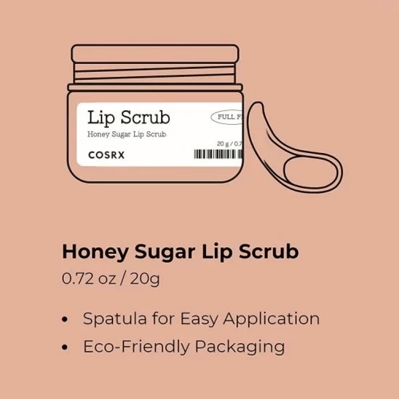 يعمل مقشر الشفاه بالعسل والسكر من كوسركس على تقشير الشفاه الجافة والمشققة ببلورات السكر الطبيعية.