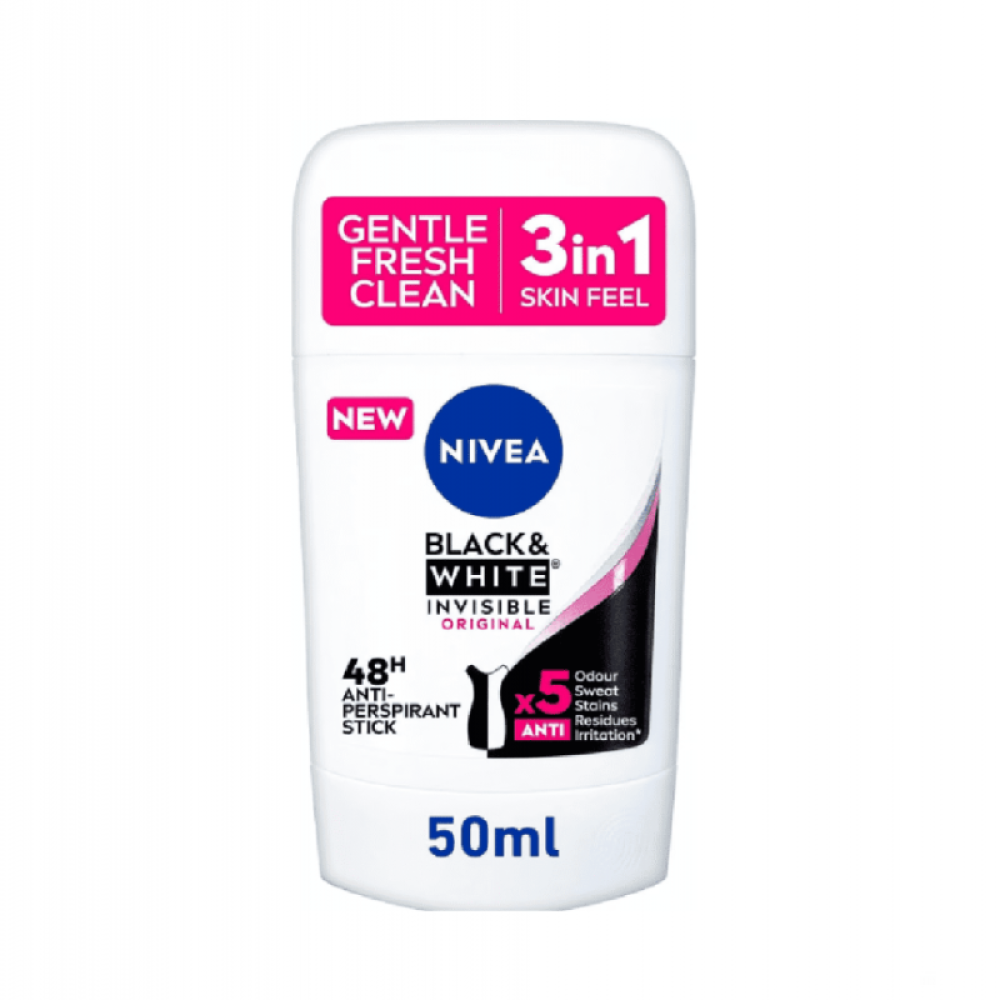نيفيا رول مزيل عرق بلاك اند وايت انفيزيبل أوريجينال للنساء، موجود هنا من أجل ملابسك وبشرتك في وقت واحد بفضل تركيبته الأساسية والفريدة 5 في 1، ليحارب البقع البيضاء على قمصانك الأسود والأخرى الصفراء على قمصانك الأبيض، إضافة إلى محاربة الرائحة الكريهة والتعرق وتوفير حماية ورائحة زكية بمنطقة الإبطين.